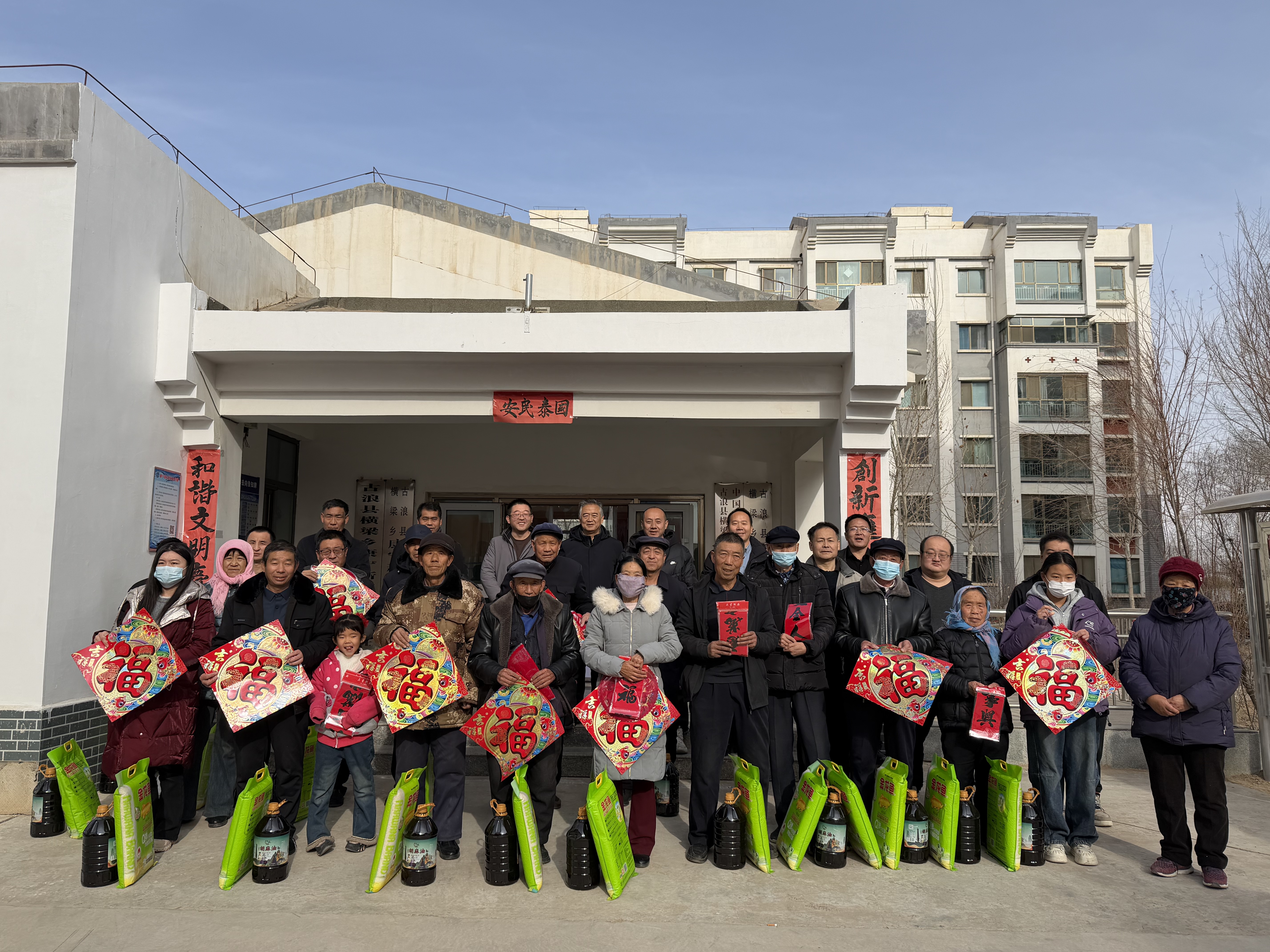1月19日,學(xué)校在幫扶點(diǎn)古浪縣橫梁鄉(xiāng)康寧新村、幸福新村開展春節(jié)前走訪慰問和送溫暖、送春聯(lián)、送祝福活動(dòng)。為困難群眾、結(jié)對(duì)幫扶戶、駐村工作隊(duì)送上春聯(lián)、福字、窗花、大米、胡麻油等慰問品,并聯(lián)合開展文化共建座談活動(dòng),將學(xué)校的關(guān)心關(guān)愛傳遞到了基層群眾心里,進(jìn)一步豐富了群眾精神文化生活,營造了祥和、喜慶的節(jié)日氛圍。