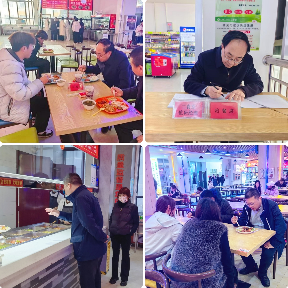 校領(lǐng)導(dǎo)嚴(yán)格遵守校園就餐秩序,自覺排隊、文明就餐。就餐過程中,他們認(rèn)真察看菜品種類、飯菜價格和就餐環(huán)境,與身旁學(xué)生親切交流,細(xì)致詢問大家對菜品口味、分量、種類、價格的建議,耐心了解同學(xué)們在學(xué)習(xí)生活和校園服務(wù)等方面的需求與想法。校領(lǐng)導(dǎo)鼓勵同學(xué)們珍惜大學(xué)時光,養(yǎng)成健康文明的飲食習(xí)慣,積極參與“光盤行動”。現(xiàn)場氣氛輕松融洽,溫馨的午餐拉近了師生距離,也為新學(xué)期注入暖意。