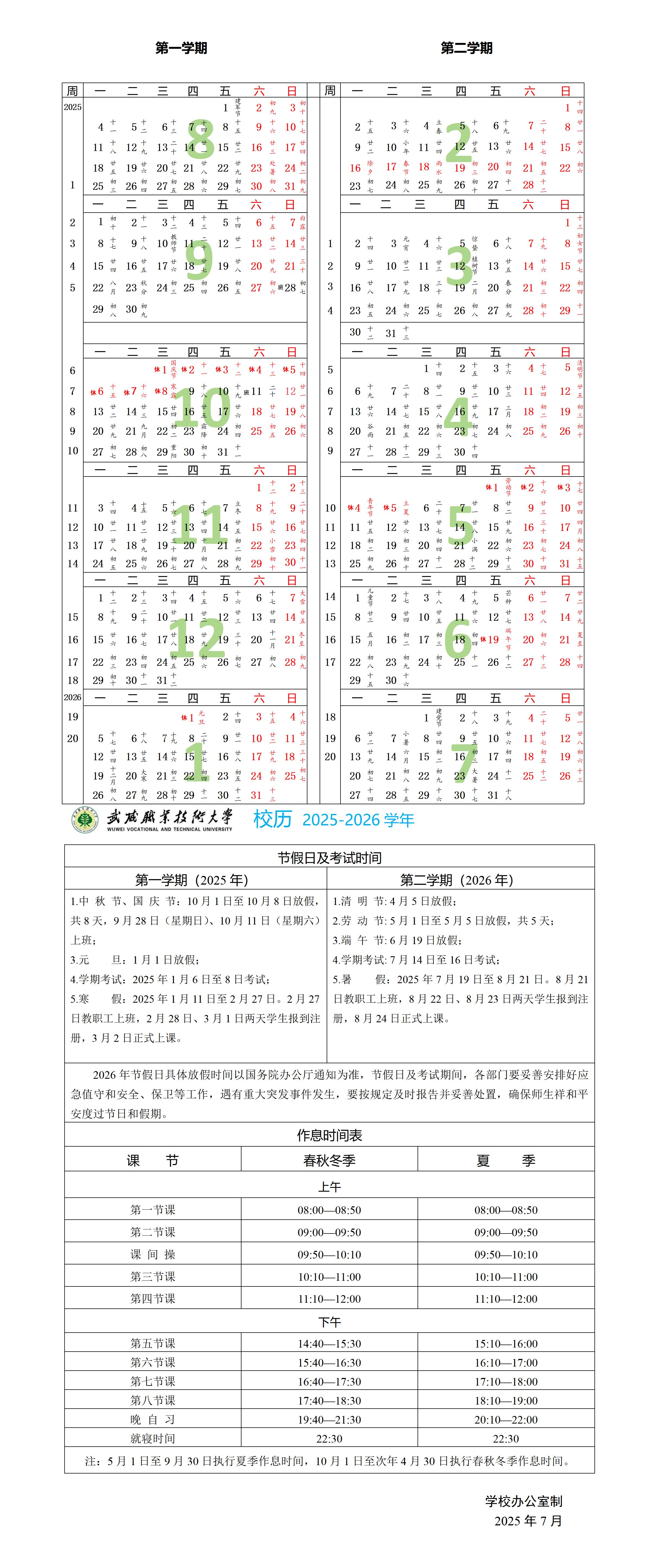 2025-2026學(xué)年校歷