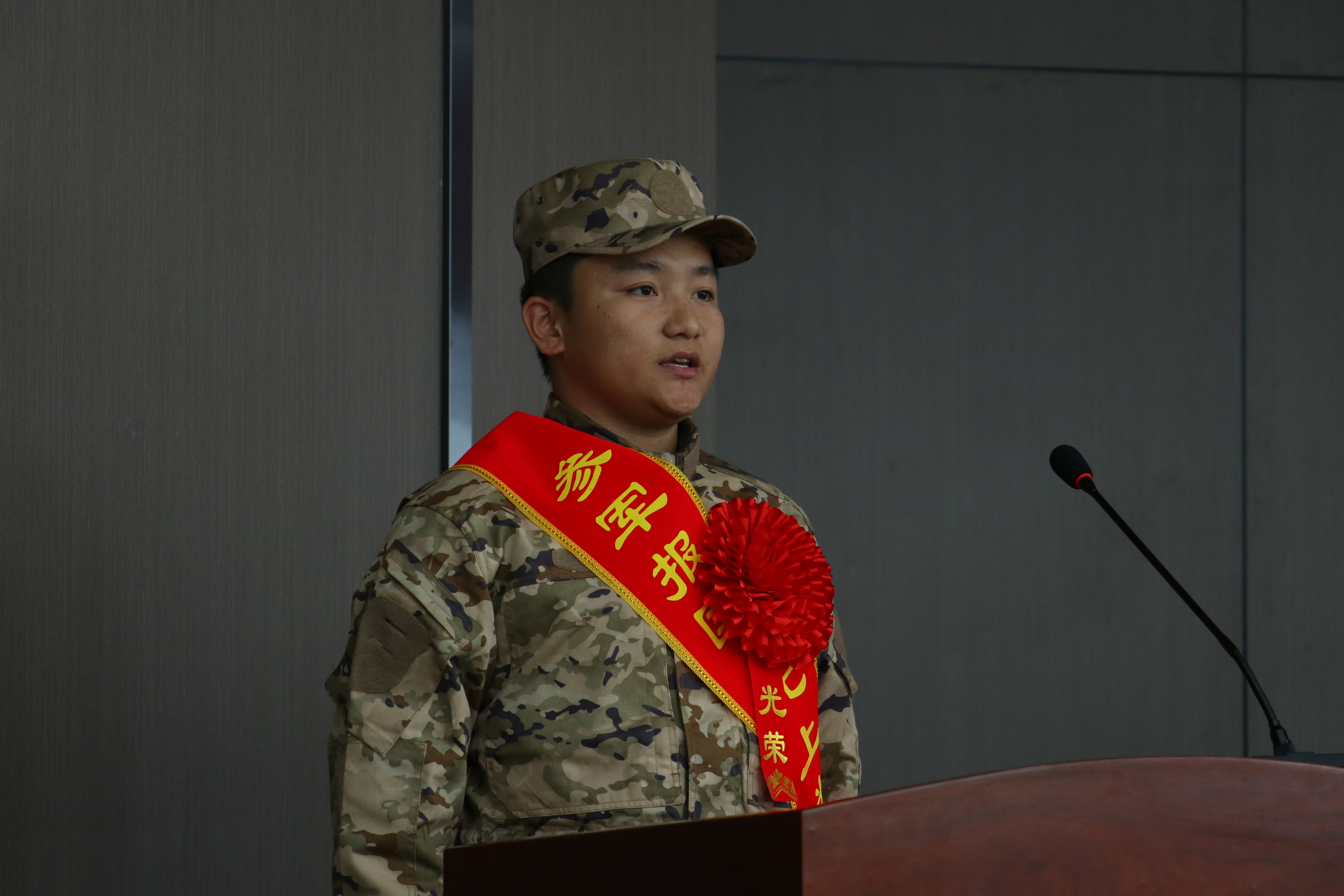 信息技術(shù)學院23級數(shù)字媒體大專班蔡紅強同學代表入伍新兵發(fā)言,表示將不負母校培養(yǎng),不負學校領導、老師和同學的期望!傳承衛(wèi)國戍邊英雄精神,爭取在軍營中建功立業(yè),報效祖國,展現(xiàn)高校學子良好的精神風貌。