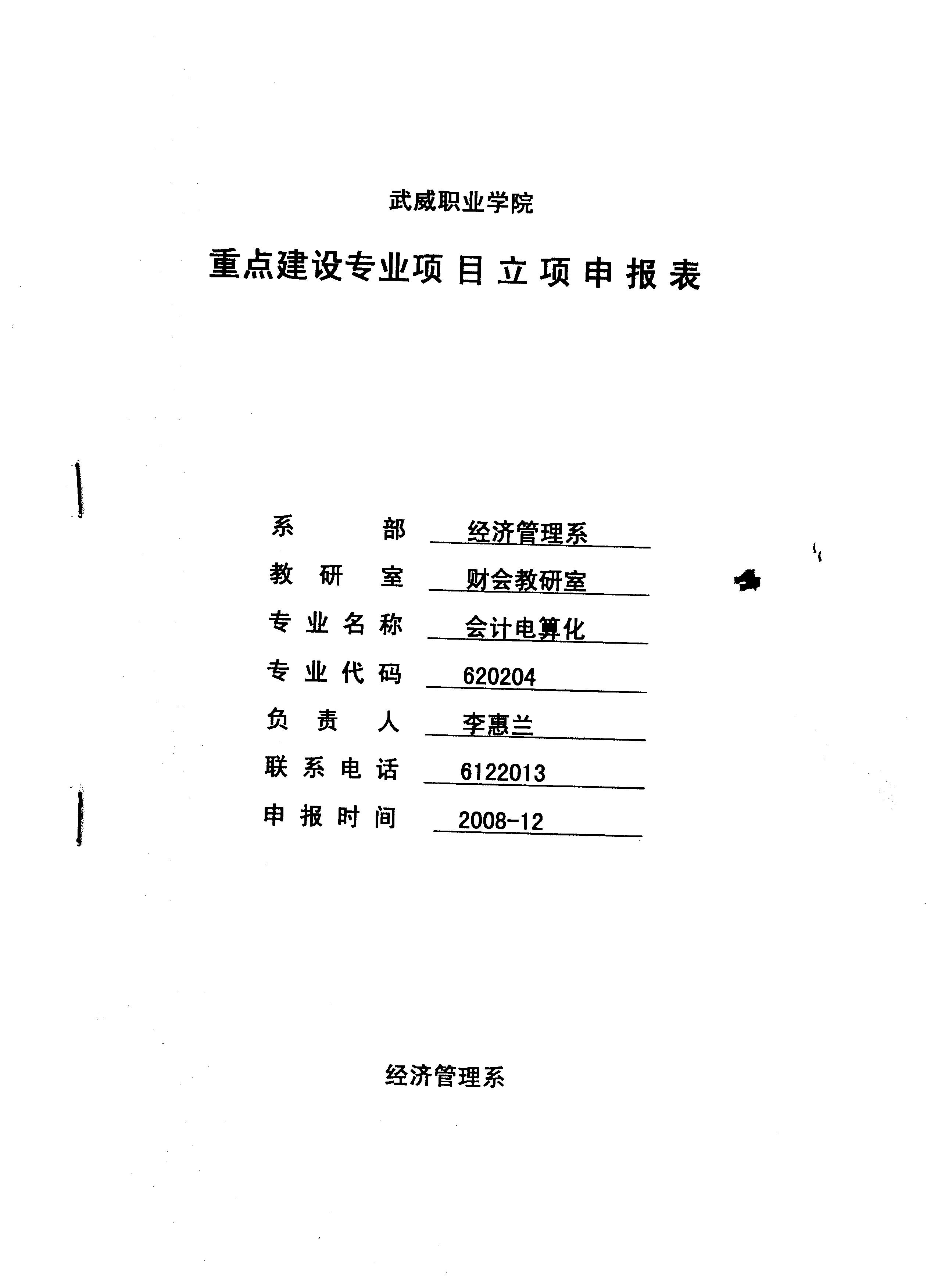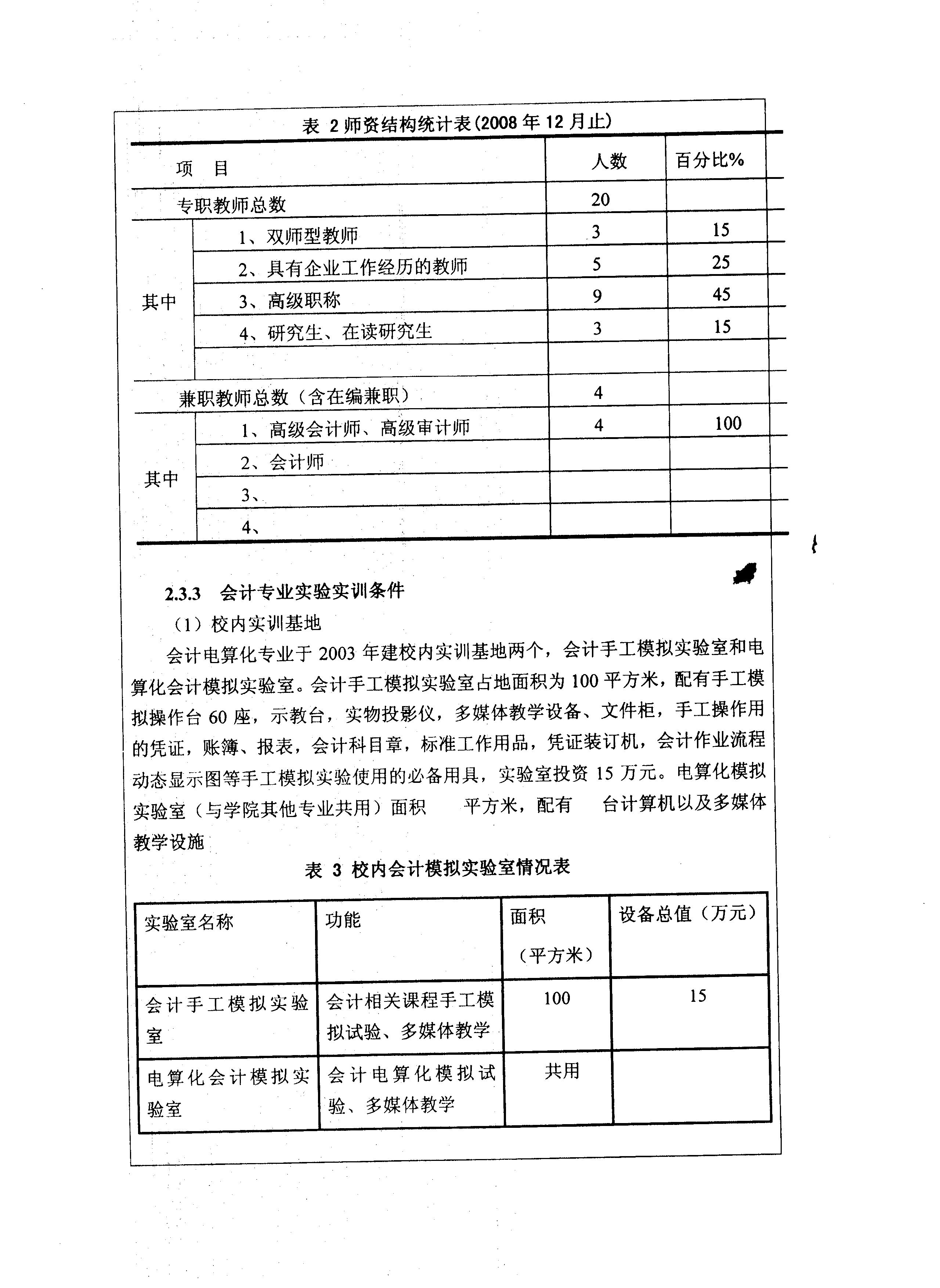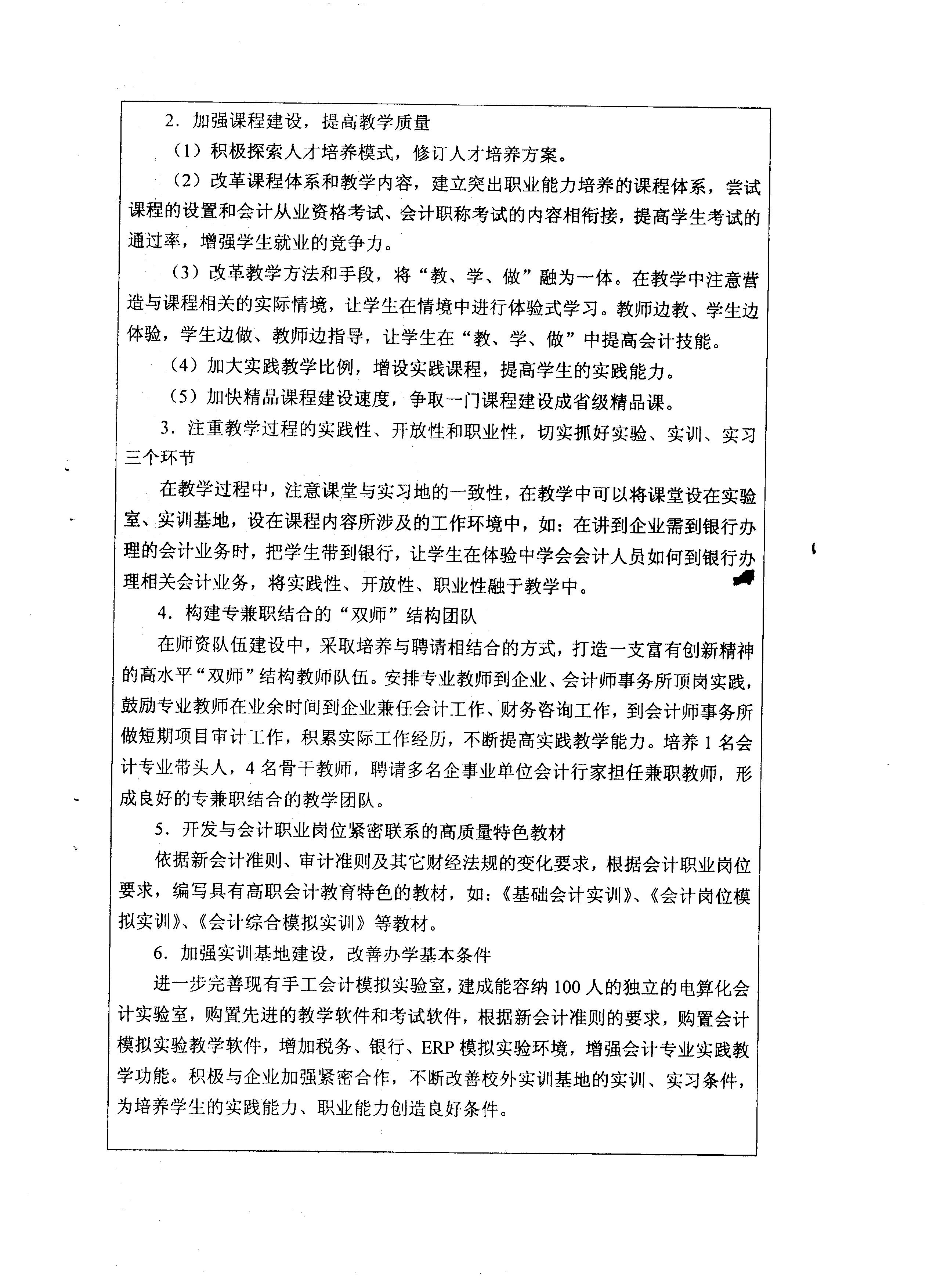 院級重點專業(yè)——會計專業(yè)申報表