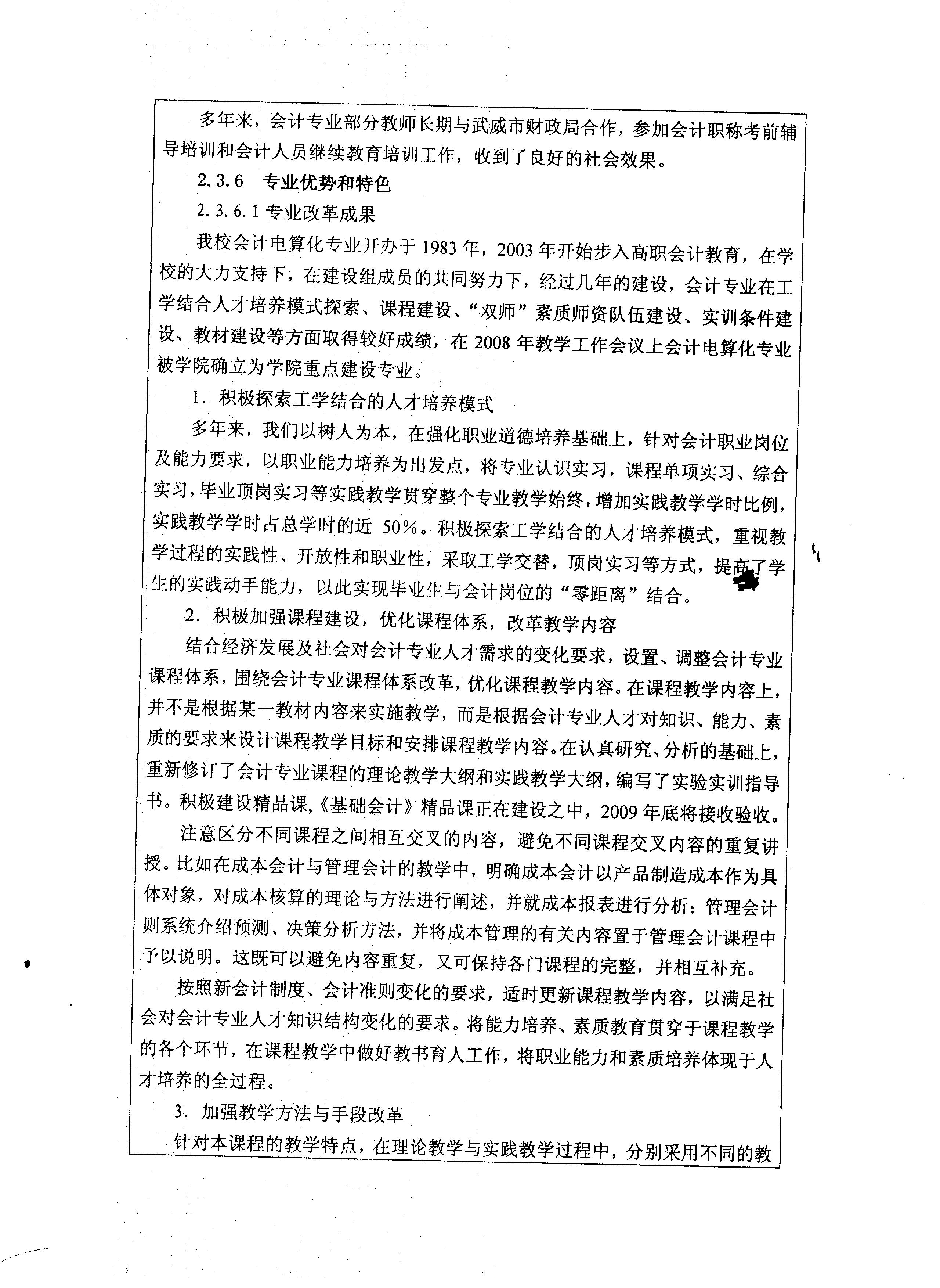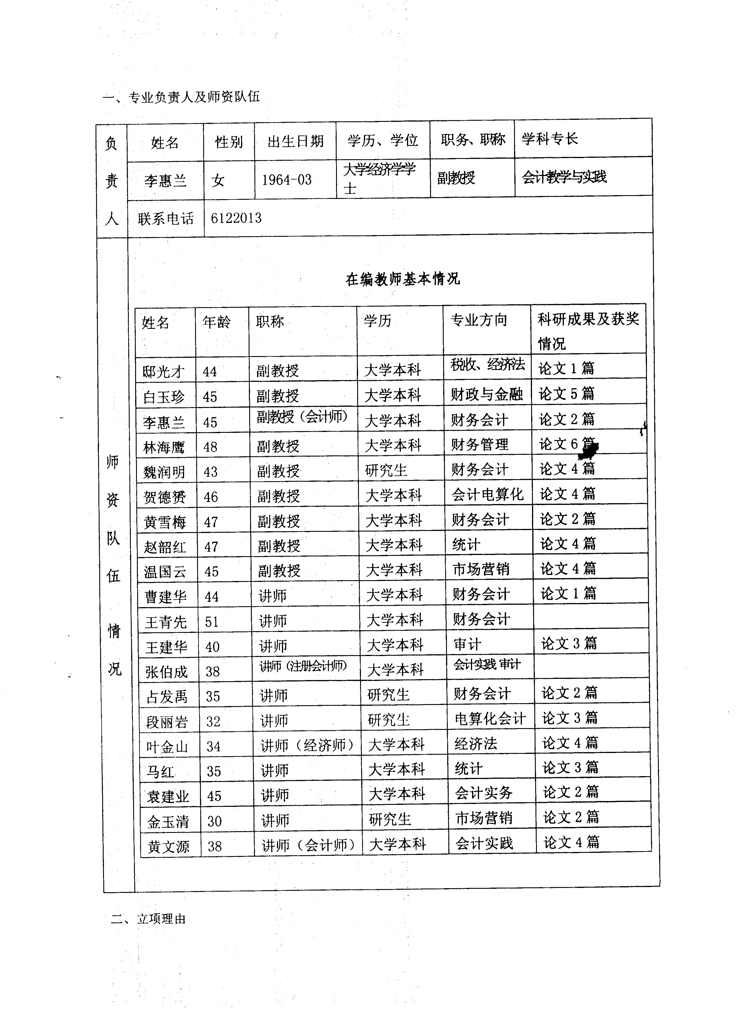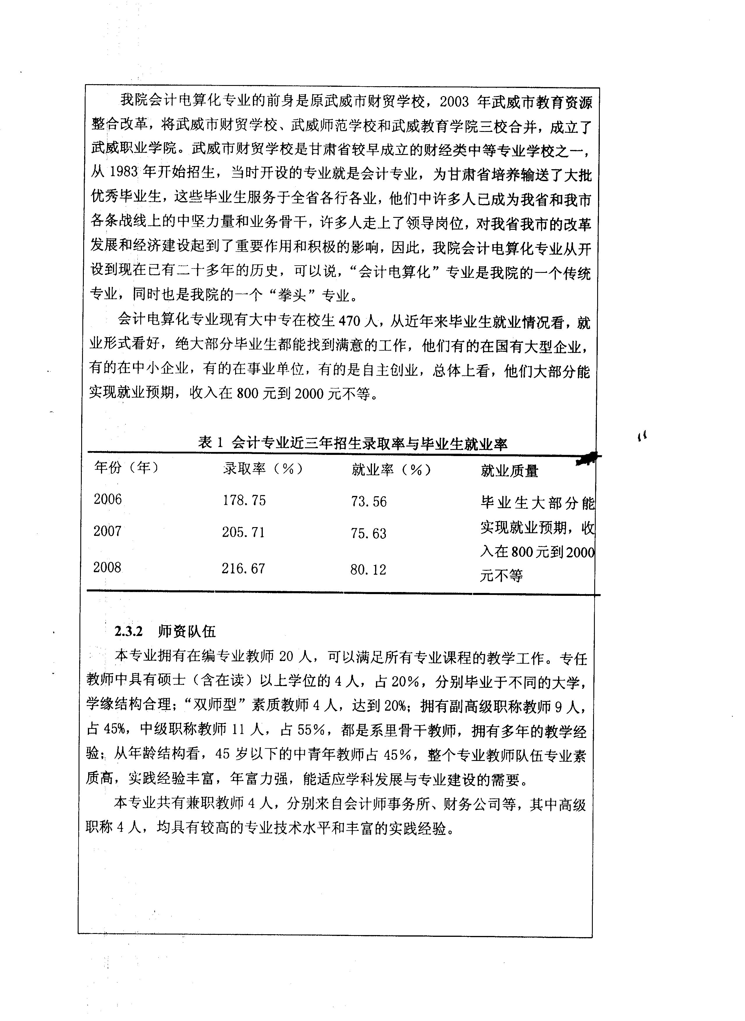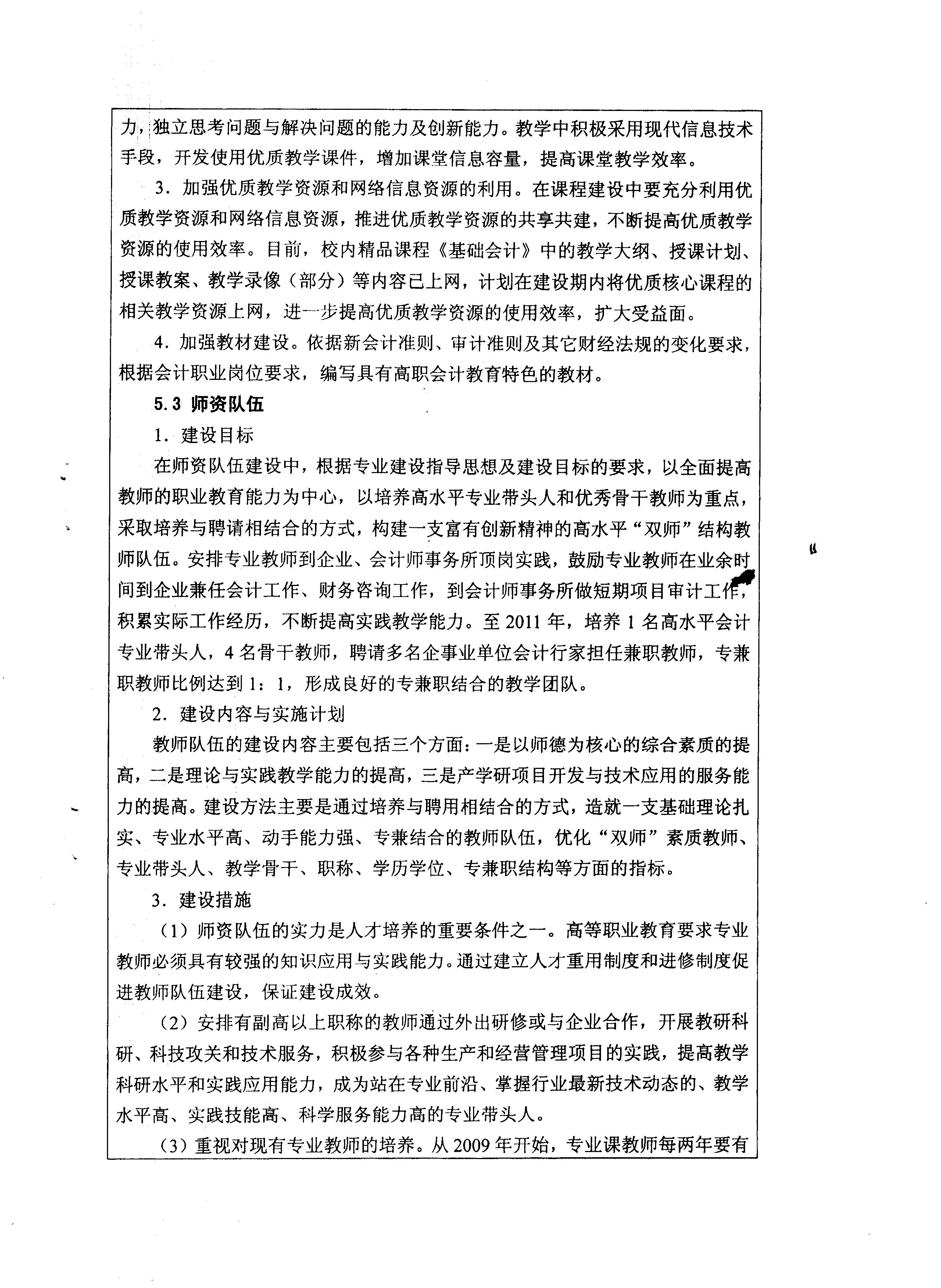 院級重點專業(yè)——會計專業(yè)申報表
