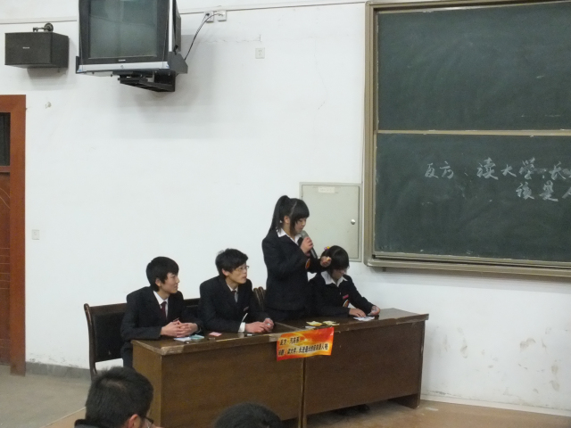 11月28日晚,我院第五屆大專辯論賽復(fù)賽第二場(chǎng)比賽在西階梯教室舉行。此次辯論賽,電信系作為正方以“讀大學(xué)生長(zhǎng)進(jìn)最大的是知識(shí)”為辯題,我系作為反方以“讀大學(xué)生長(zhǎng)進(jìn)最大的是人格”為辯題。雙方就此展開了激烈的辯論。