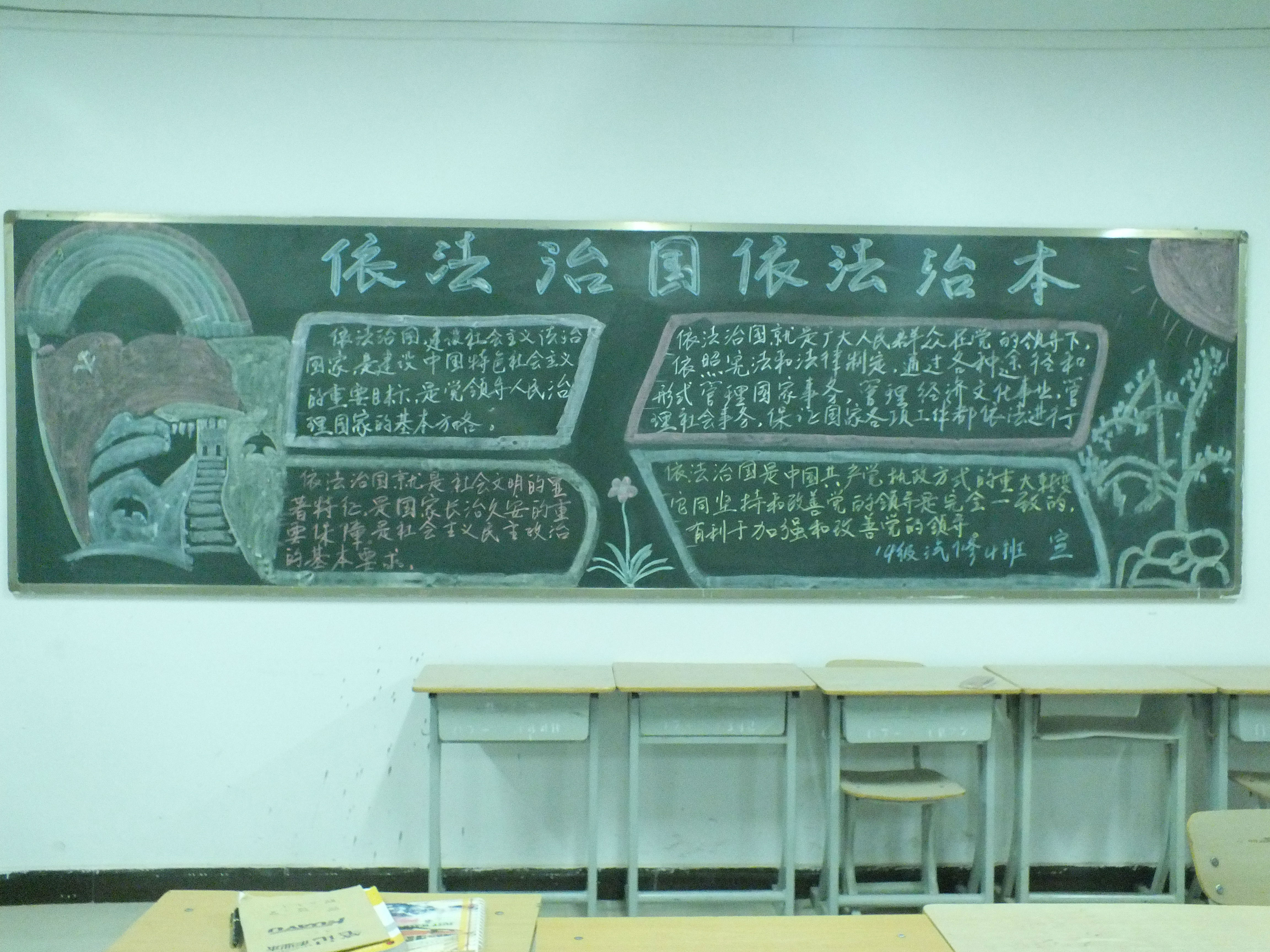 各班通過(guò)召開(kāi)普法教育主題班會(huì);“普法校園行”為主題黑板報(bào);舉辦“弘揚(yáng)憲法精神、建設(shè)法治校園”專(zhuān)題講座等形式向同學(xué)們宣傳十八屆三中、四中全會(huì)和習(xí)近平總書(shū)記系列重要講話(huà)精神;宣傳法治教育在推進(jìn)法治校園建設(shè)中的基礎(chǔ)作用;宣傳開(kāi)展法治教育的新思路、新方法、新成效;宣傳深化法治文化、法治創(chuàng)建、依法治理等活動(dòng)的成功經(jīng)驗(yàn)、典型實(shí)例和亮點(diǎn)工作;宣傳法治教育工作中涌現(xiàn)的先進(jìn)人物和學(xué)法守法典型等。