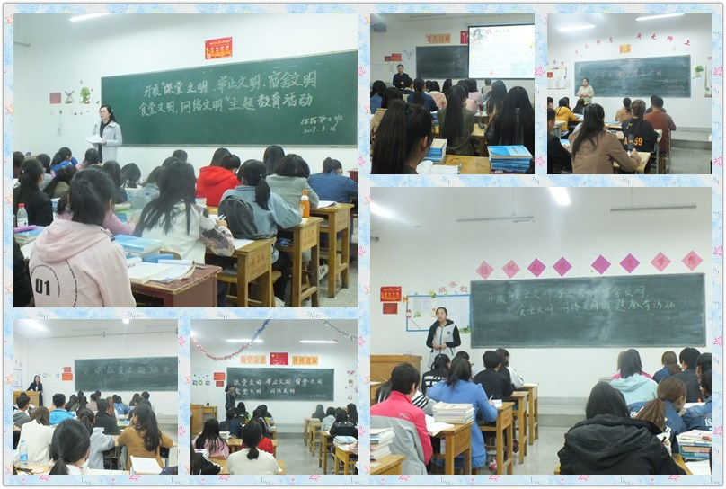 各班班會從什么是文明講起,聯(lián)系生活實際,講述校園文明、家庭文明和社會文明的重要性。各班主任首先向同學(xué)們闡述了對于當(dāng)代大學(xué)生來說,文明修身和專業(yè)學(xué)習(xí)同等重要,專業(yè)學(xué)習(xí)主要培養(yǎng)大學(xué)生的科學(xué)精神,而文明修身主要培養(yǎng)大學(xué)生的人文精神,二者缺一不可。通過講述身邊同學(xué)的故事,指出校園、家庭和社會上存在的不文明、不和諧現(xiàn)象,要求同學(xué)們對自身言行舉止進(jìn)行約束,共同攜手,提高自身文明行為,提升大家的思想道德和人文素質(zhì)。隨后,由同學(xué)們就“文明行為”發(fā)表了自己的看法,大家由主題聯(lián)想到自己身邊的一些不文明的行為,并就這些不文明行為發(fā)表了自己觀點,同時,同學(xué)們就如何提高自身道德素養(yǎng)、如何更好地做到文明修身提出了自己的建議和意見。經(jīng)過同學(xué)們的積極發(fā)言和認(rèn)真討論,大家認(rèn)為只有文明的個人才會有文明的班級團(tuán)體,才會有文明的校園,才會有和諧的社會。
