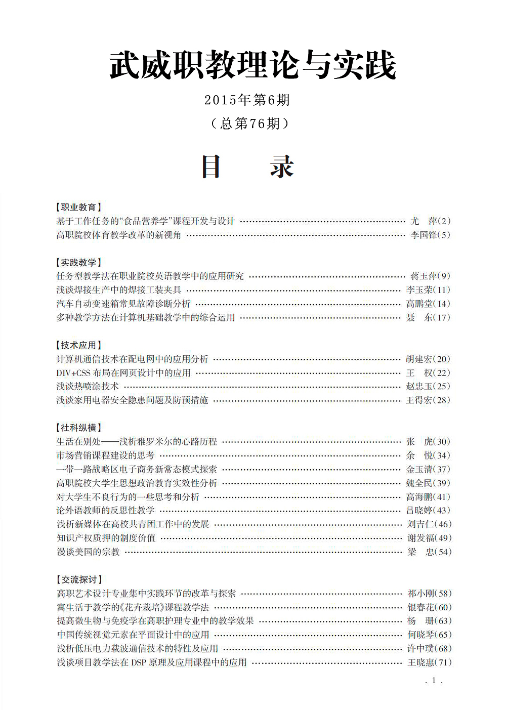 2015年《武威職教理論與實(shí)踐》目錄