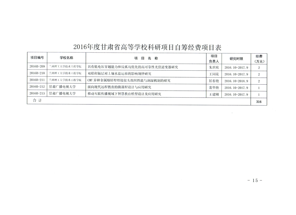 轉(zhuǎn)發(fā)甘肅省財(cái)政廳 教育廳文件 關(guān)于下達(dá)2016年度甘肅省高等學(xué)校科研項(xiàng)目自籌經(jīng)費(fèi)項(xiàng)目的通知