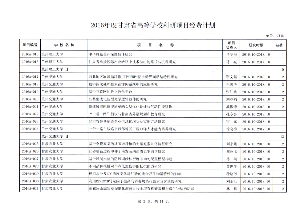 轉發(fā)甘肅省教育廳關于2016年度甘肅省高等學??蒲许椖拷Y項情況的通知