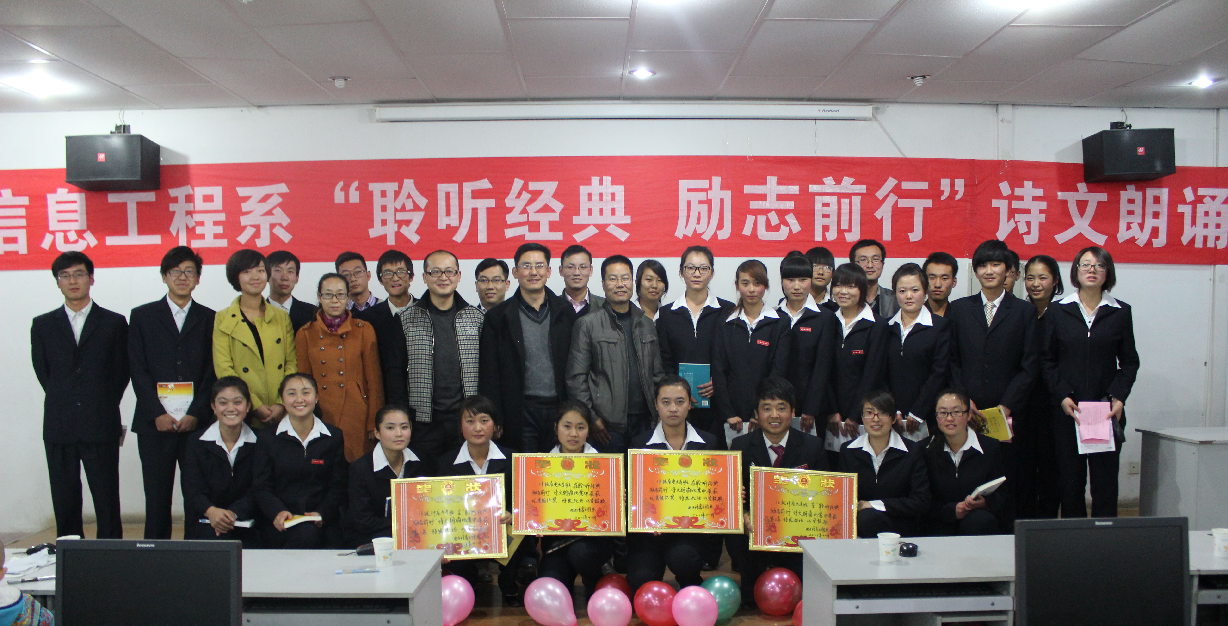 11月14日晚,電子信息工程系團(tuán)總支舉辦“聆聽經(jīng)典•勵志前行”詩文朗誦比賽,在一號教學(xué)樓十號機(jī)房進(jìn)行。黨總支書記張伯成,輔導(dǎo)員鄧偉華、唐宗舜,全體班主任及180多名學(xué)生觀看了比賽。