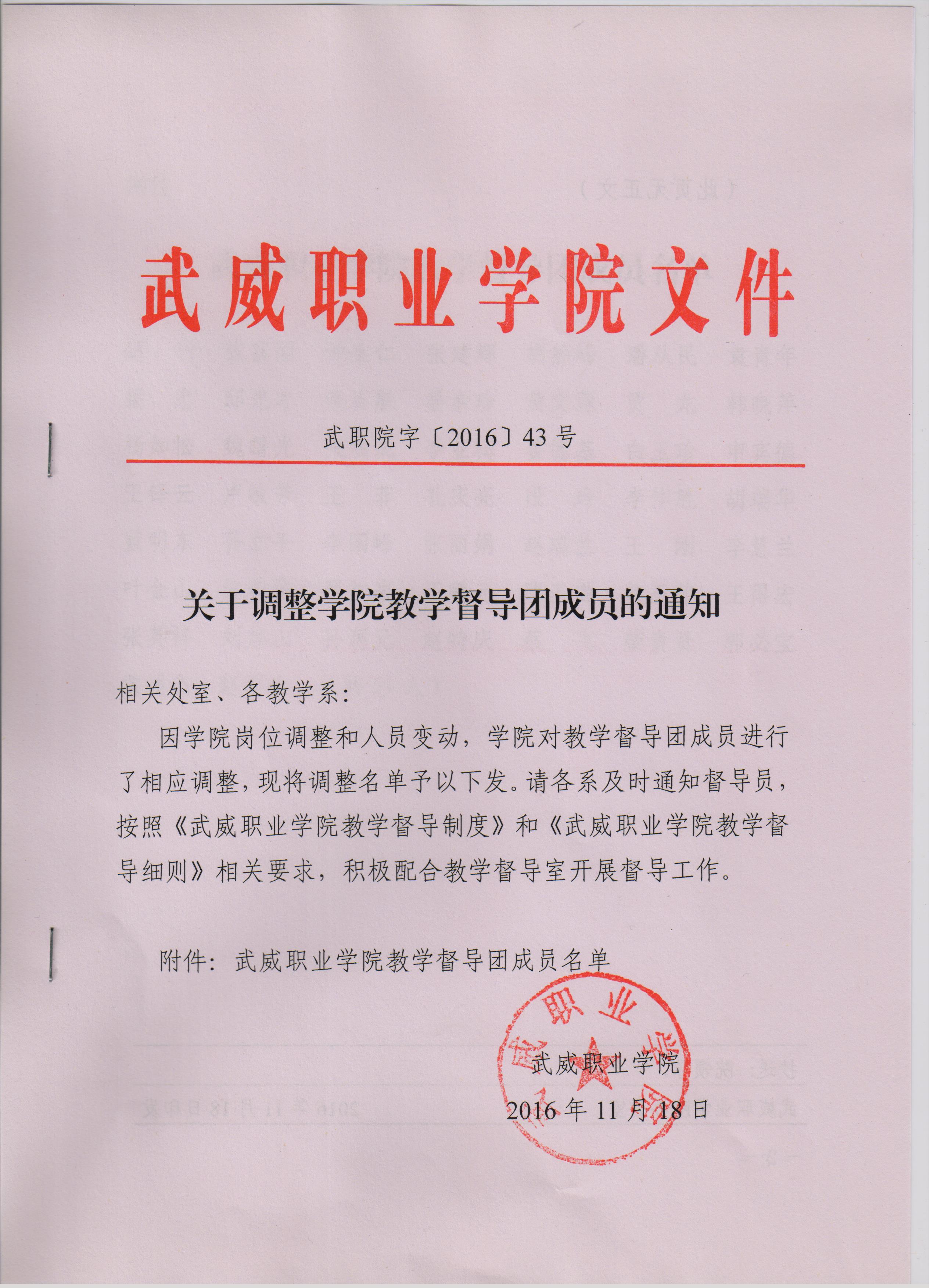 關(guān)于調(diào)整學(xué)院教學(xué)督導(dǎo)團成員的通知