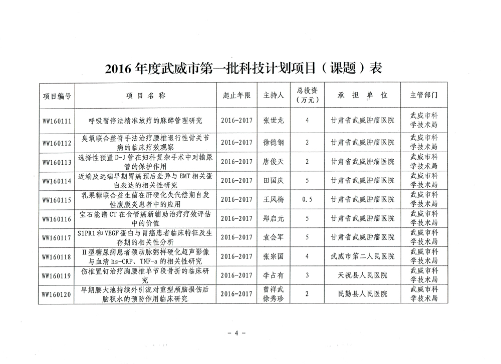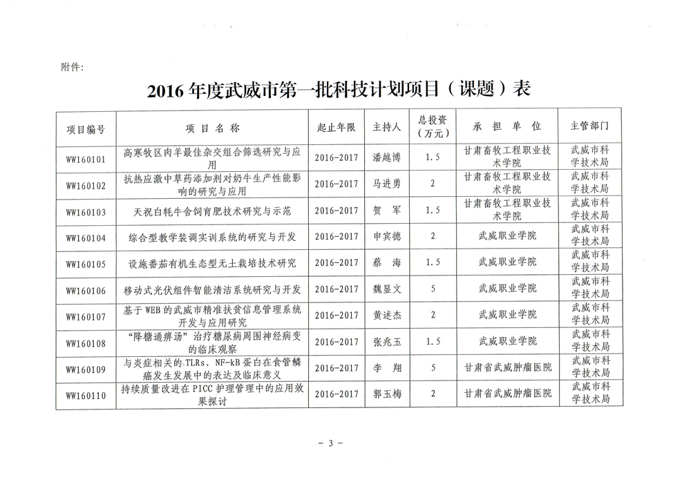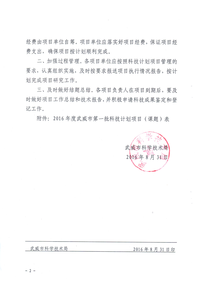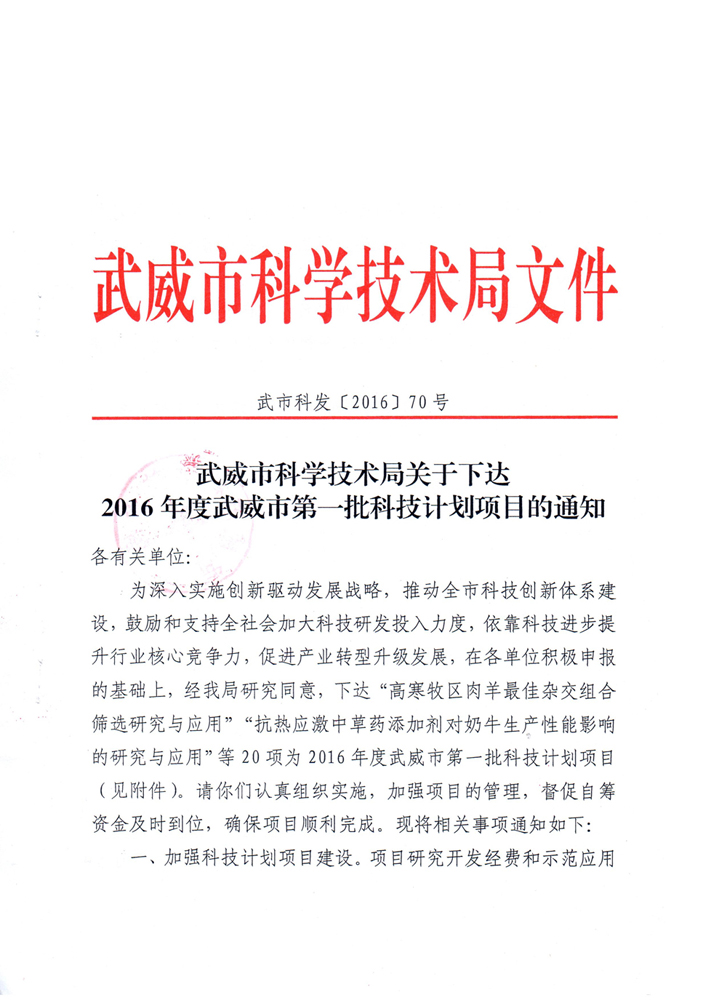 武威市科學(xué)技術(shù)局關(guān)于下達2016年度武威市第一批科技計劃項目的通知