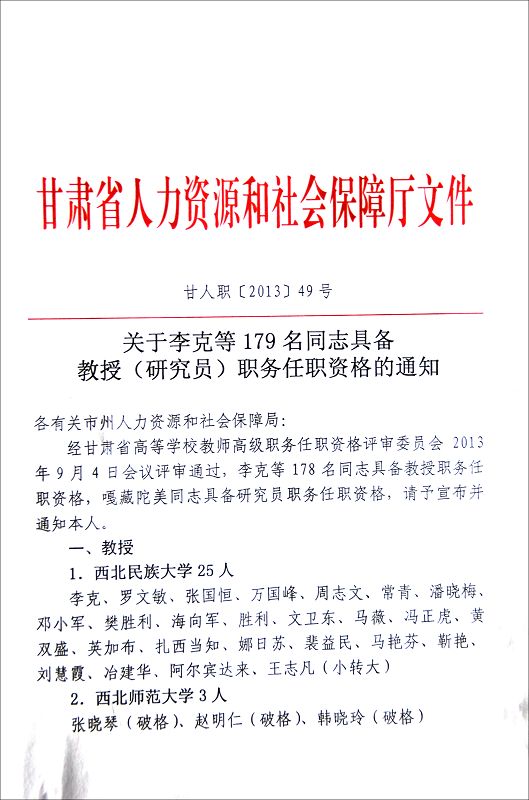 我院翟存祥、邸光才二位同志取得教授職務任職資格