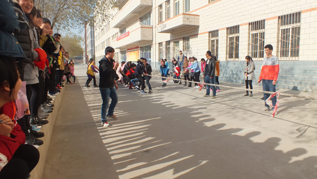 隨著蔡柱山宣布運動會正式開始的指令發(fā)出,拔河決賽立刻在熱烈的氣氛中拉開了架勢,進入決賽的班級在裁判的指導(dǎo)下迅速進入指定位置,各班同學(xué)紛紛加油助威,運動場上氣氛頓時被調(diào)動起來了。根據(jù)賽程安排,籃球賽、“15人跳繩”、乒乓球賽等集體和單人的各項比賽依次有序進行,特別是跳繩比賽,參與面廣,同學(xué)們都積極投入其中,感受到運動的樂趣和團結(jié)的力量。