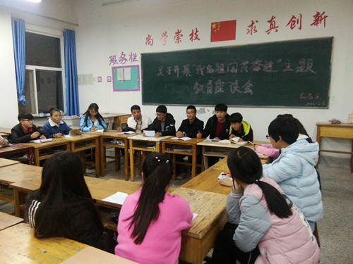 通過組織各班團干部開展 “我與祖國共奮進”主題座談會,讓團干部們對歷史有了深刻的了解,也讓同學們在這次座談會中深刻領(lǐng)悟到身為中華兒女要勿忘恥辱,為實現(xiàn)中華民族偉大復興的中國夢而勤奮學習。同時,各班團支部以形式多樣的主題團會,表達出為了實現(xiàn)“中國夢”,讓屈辱的歷史不再重演,將要萬分珍惜今天這來之不易的和平生活,努力學習,不斷進取。