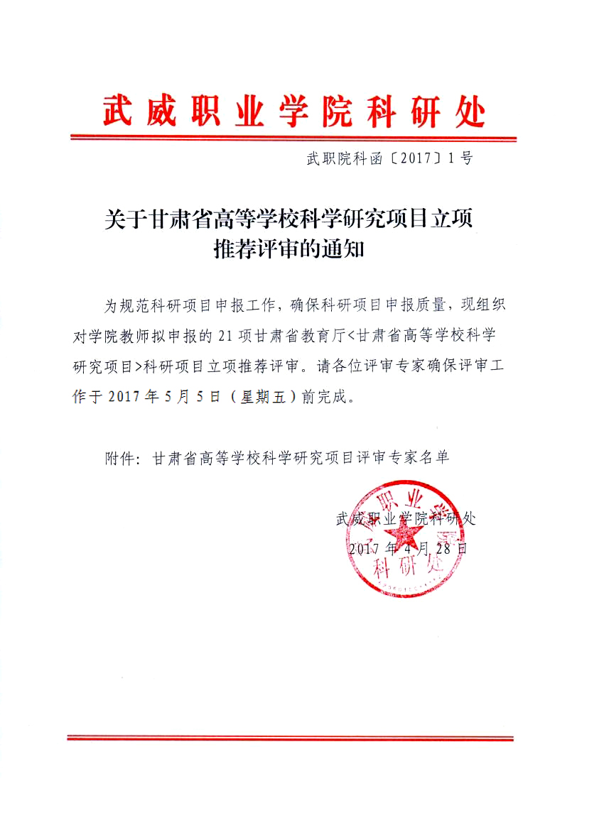 關(guān)于甘肅省高等學(xué)校科學(xué)研究項(xiàng)目立項(xiàng)推薦評(píng)審的通知