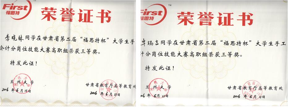 經(jīng)濟管理系會計電算化大專班四名學生在李惠蘭老師帶領下于2016年6月10日赴蘭州大學參加了甘肅省第二屆“福思特”大學生手工會計分崗位技能競賽。