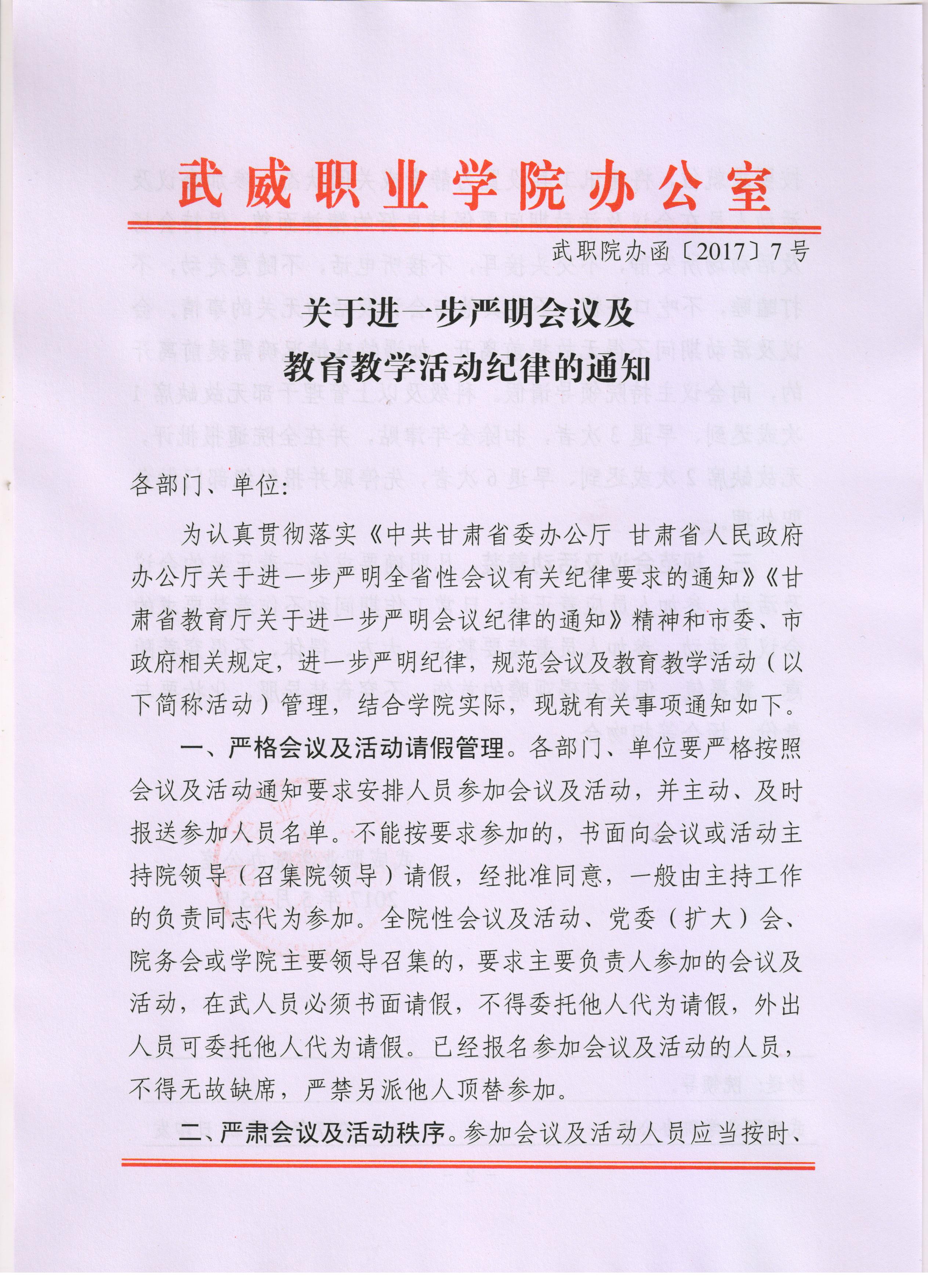 關于進一步嚴明會議及教育教學活動紀律的通知