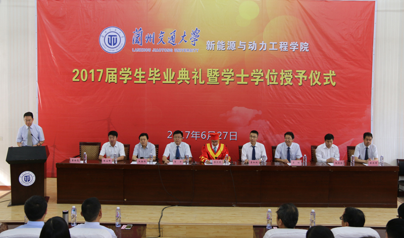 四載辛勤耕耘,一旦收獲碩果。6月27日上午,新能源與動(dòng)力工程學(xué)院2017屆畢業(yè)典禮暨學(xué)位授予儀式在尚德樓正德廳隆重舉行。蘭州交通大學(xué)黨委副書(shū)記、常務(wù)副校長(zhǎng)李引珍,黨委(校長(zhǎng))辦公室副主任李紅紅、學(xué)生處處長(zhǎng)貢力、招生就業(yè)處處長(zhǎng)蘇程、教務(wù)處副處長(zhǎng)王海涌、財(cái)務(wù)處副處長(zhǎng)楊在忠、校團(tuán)委書(shū)記張立峰,武威職業(yè)學(xué)院副院長(zhǎng)翟存祥,新能源與動(dòng)力工程學(xué)院院長(zhǎng)董海鷹、副院長(zhǎng)姚翔飛、副院長(zhǎng)湯旻安出席了典禮。新能源與動(dòng)力工程學(xué)院256名畢業(yè)生及師生代表共同參加了典禮。典禮由新能源與動(dòng)力工程學(xué)院院長(zhǎng)董海鷹主持。