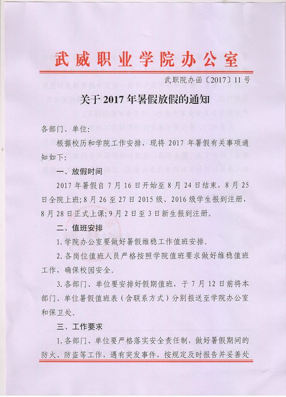 關于2017年暑假放假的通知