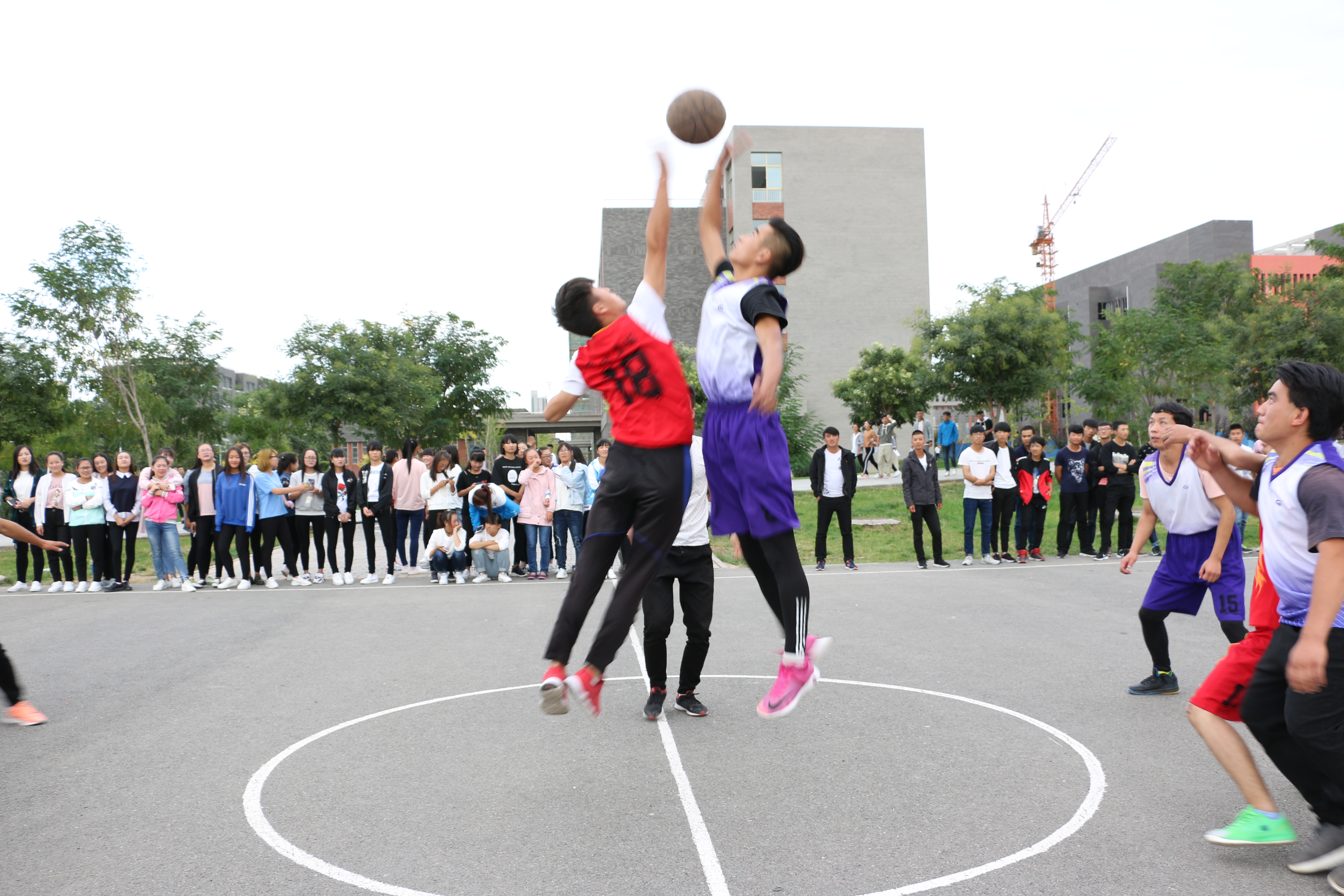 此次比賽有男子籃球、男子排球、女子籃球、女子排球共四各項(xiàng)目。經(jīng)過(guò)第一輪的淘汰賽,有八支代表隊(duì)晉級(jí)。9月25日下午,晉級(jí)的八支代表隊(duì)分別進(jìn)行了男子、女子籃球排球賽的冠亞軍爭(zhēng)奪賽?;@球場(chǎng)上,隨著裁判員一聲哨響并將籃球拋向上空,兩方隊(duì)員奮力躍起,激烈的賽事正式開(kāi)始。決戰(zhàn)雙方的隊(duì)員斗智斗勇,比分不斷上升,賽事異常激烈,引得全場(chǎng)歡聲雷動(dòng)。與此同時(shí),排球總決賽也在新排球場(chǎng)上展開(kāi)。