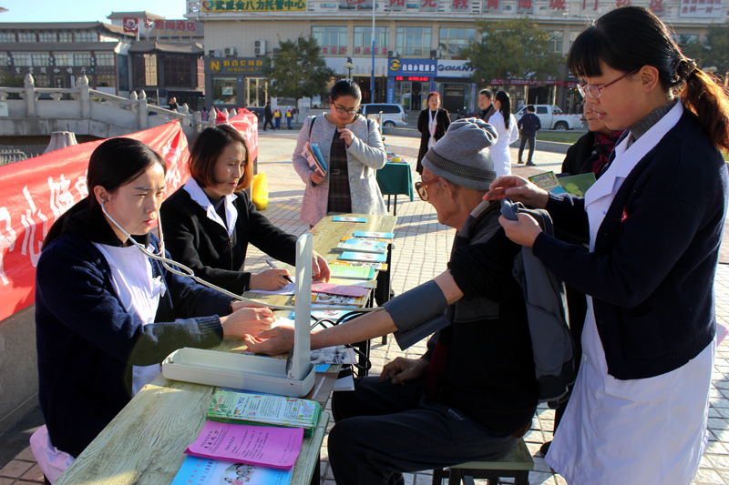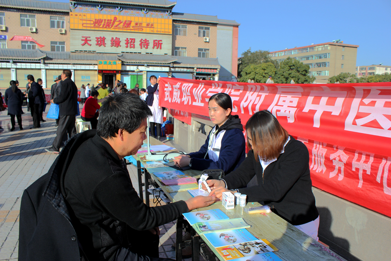 11 月1,為配合2017年甘肅衛(wèi)生計(jì)生題材劇目秦腔《皇甫謐》在武威成功上演,根據(jù)市衛(wèi)生計(jì)生委安排,直屬附屬醫(yī)院派出醫(yī)生李生海、護(hù)士許海燕等醫(yī)務(wù)人員組成的醫(yī)療小分隊(duì),與其他10余家醫(yī)療衛(wèi)生單位的醫(yī)務(wù)人員一道,在武威南城門(mén)廣場(chǎng)開(kāi)展便民義診服務(wù)活動(dòng)。