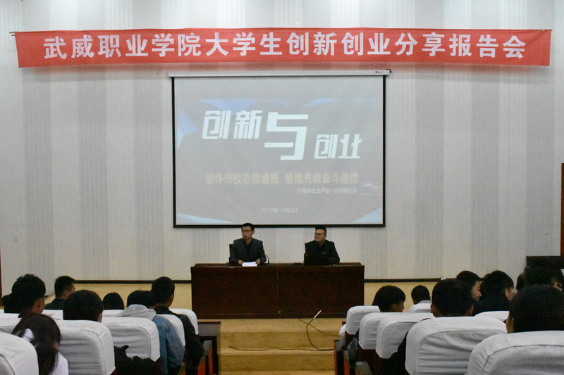 為進(jìn)一步提升我院大學(xué)生的綜合素質(zhì)和創(chuàng)新、創(chuàng)業(yè)能力,培養(yǎng)大學(xué)生的創(chuàng)業(yè)意識(shí)、思維和技能,增強(qiáng)大學(xué)生的專(zhuān)業(yè)信心及創(chuàng)業(yè)信心,以創(chuàng)業(yè)帶動(dòng)就業(yè),正確引導(dǎo)同學(xué)們以健康積極的心態(tài)開(kāi)展創(chuàng)新、創(chuàng)業(yè)及就業(yè)活動(dòng)。2017年11月2日,我院07級(jí)優(yōu)秀畢業(yè)生蘆超創(chuàng)業(yè)就業(yè)分享報(bào)告會(huì)在學(xué)院正德廳隆重舉行。本次大會(huì)由創(chuàng)新創(chuàng)業(yè)中心承辦,我院07級(jí)畢業(yè)生蘆超,現(xiàn)任甘肅擺渡人文化發(fā)展有限公司總經(jīng)理、武威職業(yè)學(xué)院大學(xué)生創(chuàng)業(yè)導(dǎo)師、共青團(tuán)創(chuàng)業(yè)宣講團(tuán)成員、甘肅菜鳥(niǎo)電子商務(wù)有限公司特聘講師,應(yīng)邀出席并做了精彩的報(bào)告。全院師生二百多人參加了此次大會(huì),報(bào)告會(huì)由雙創(chuàng)中心胡建宏老師主持。