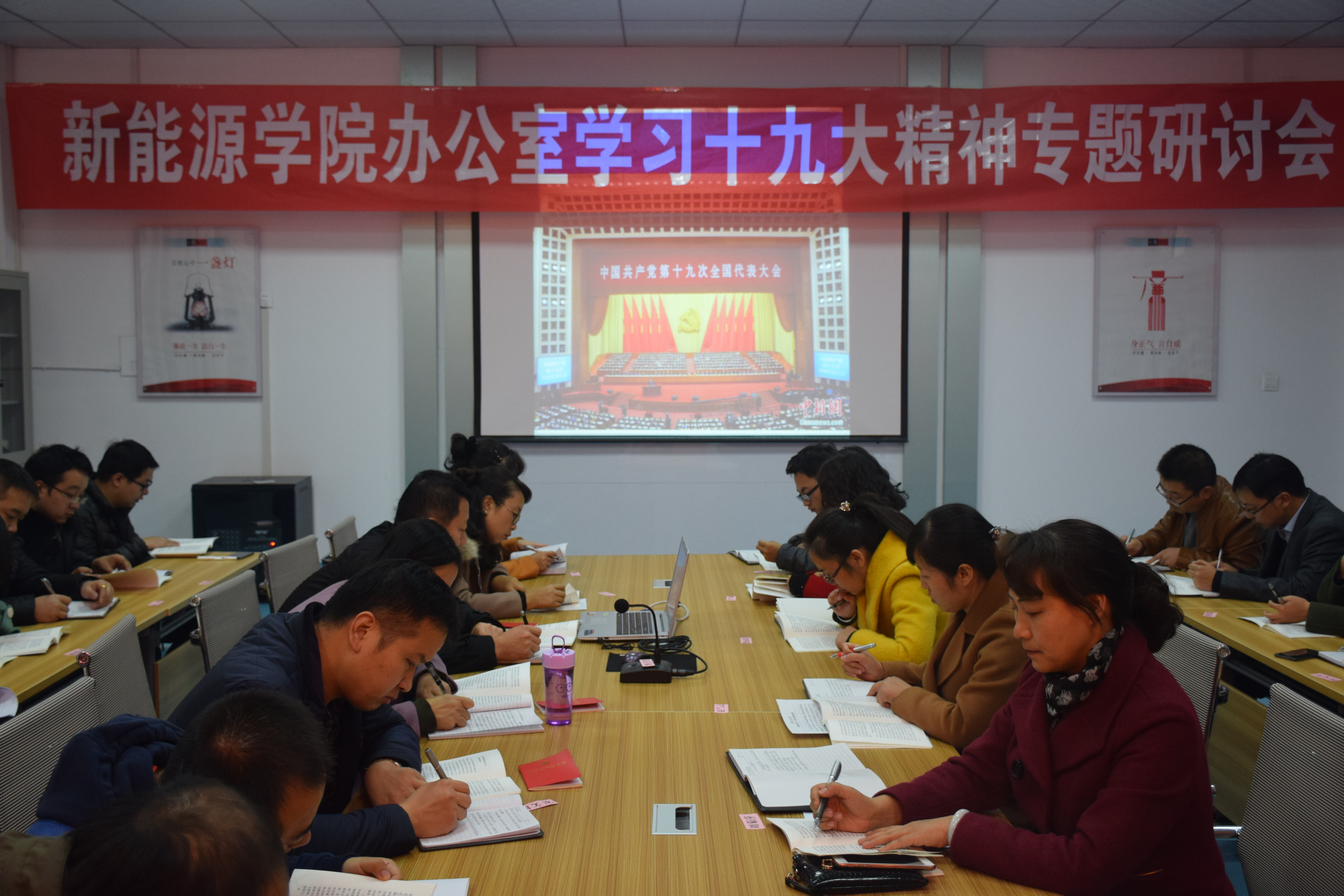 為認(rèn)真學(xué)習(xí)貫徹黨的十九大精神,深入領(lǐng)會(huì)習(xí)近平新時(shí)代中國(guó)特色社會(huì)主義思想,準(zhǔn)確理解和把握新時(shí)代我國(guó)社會(huì)主要矛盾變化以及經(jīng)濟(jì)領(lǐng)域的重大問(wèn)題。11月23日下午,新能源與動(dòng)力工程學(xué)院組織全體教職工在黨員活動(dòng)室召開(kāi)學(xué)習(xí)十九大精神專(zhuān)題研討會(huì)。會(huì)議由新能源與動(dòng)力工程學(xué)院辦公室黨支部書(shū)記任陶主持。