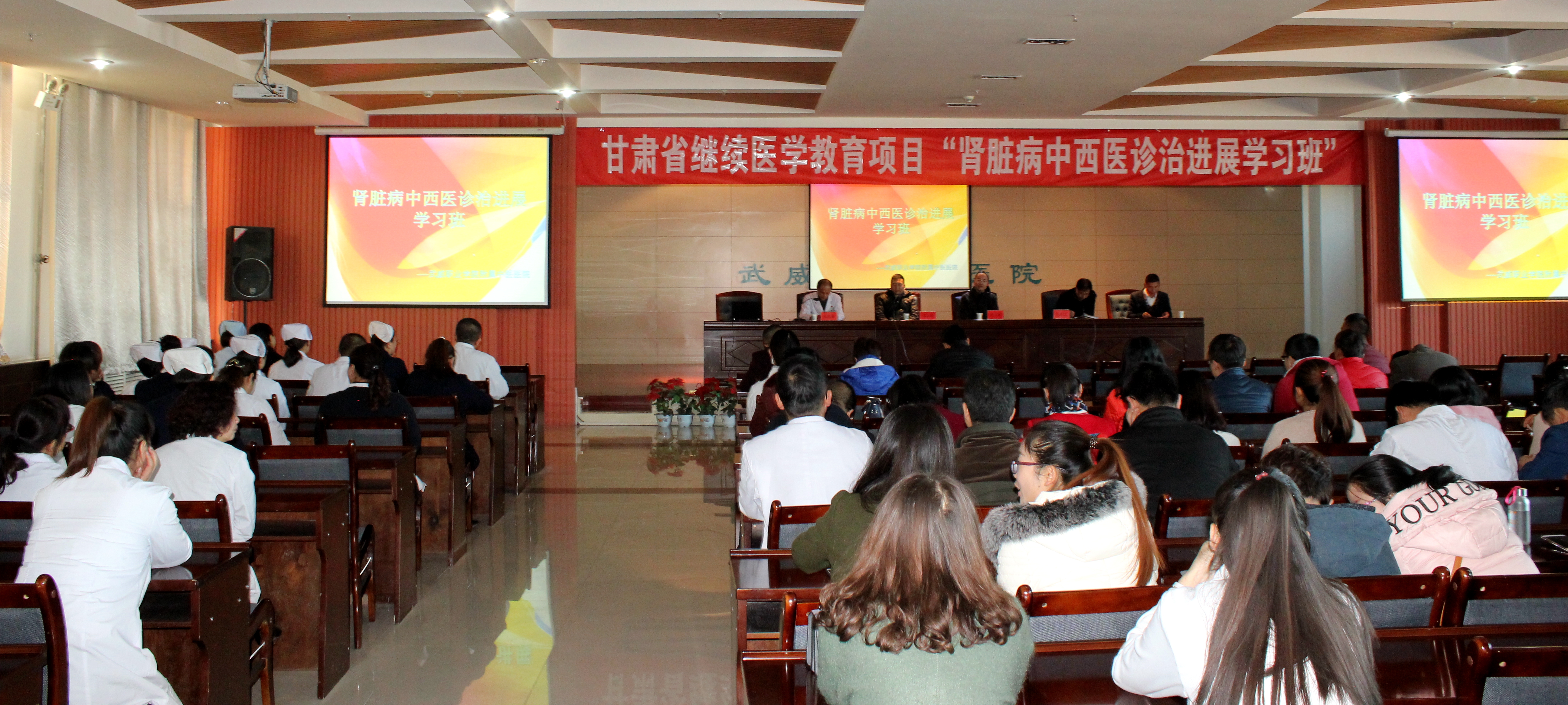 醫(yī)院200余名醫(yī)務(wù)工作者參加了培訓(xùn)學(xué)習(xí)。副院長宗武三、毛照海出席了開班儀式。甘肅省人民醫(yī)院腎臟內(nèi)科主任、主任醫(yī)師馬志剛教授和腎臟內(nèi)科副主任、主任醫(yī)師黃文輝教授為大家作學(xué)術(shù)講座。